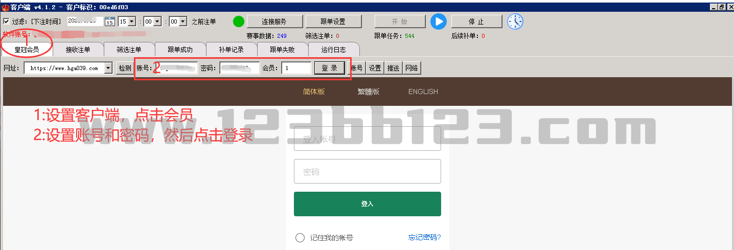 1:点击会员会弹出新窗口,先复制网站的网址到浏览器登陆一次账号,确保账号能正常登陆再到软件上填上账号和密码,然后点击登陆即可。