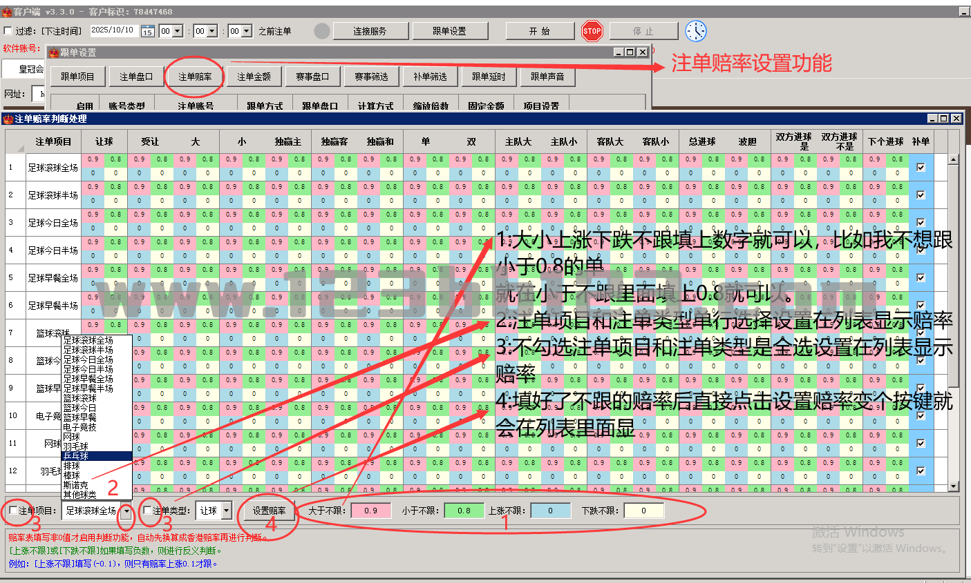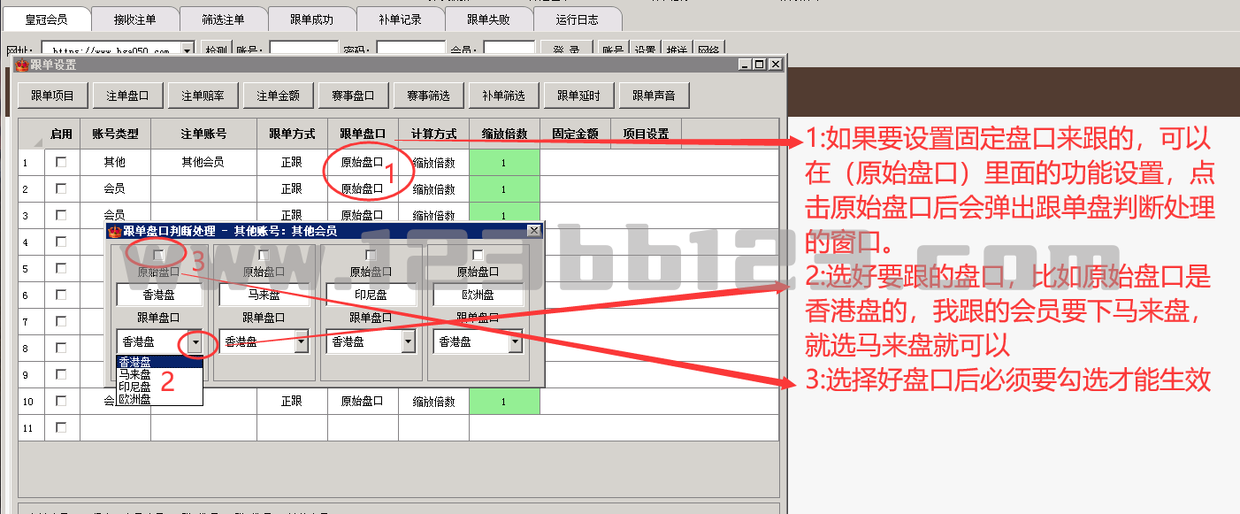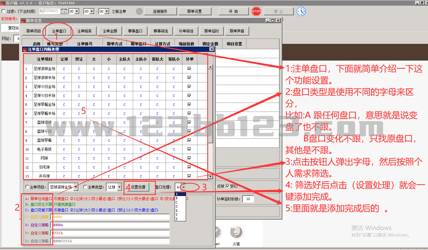10:注单盘口设置,点击注单盘口进入到里面,上图里面也简单介绍了设置的操作步骤。