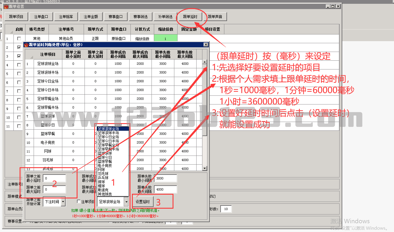 15:跟单延时设置,点击跟单延时弹出窗口,然后进行自己的需求来设置延时的时间软件上是使用(毫秒)