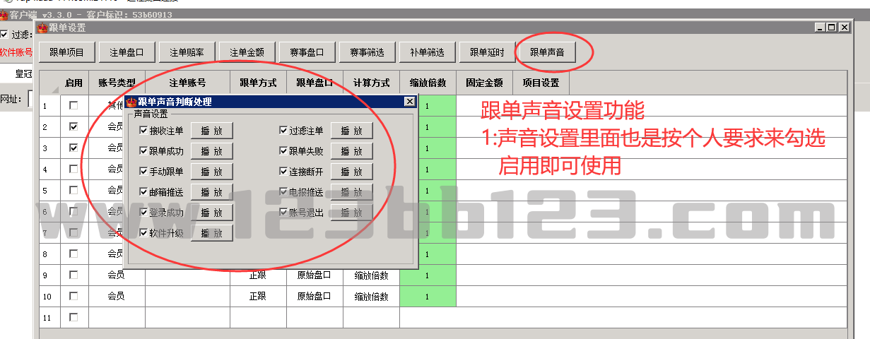 16:跟单声音设置,跟单声音功能按个人需求勾选设置