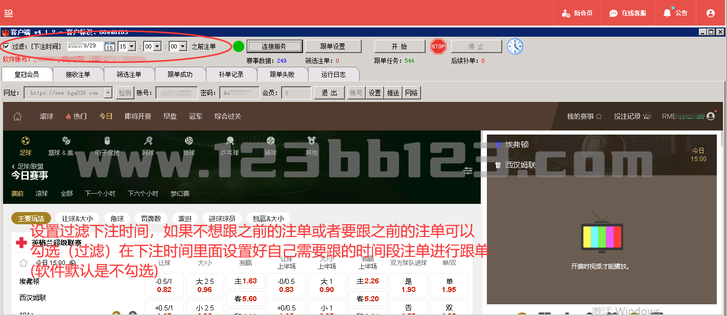 2:设置过滤下注时间,软件上默认是不勾选的,不勾选就是服务端边开启后所有注单才能读取,有个别客户需求不跟之前的注单,